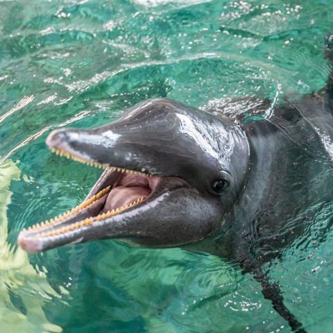 Hope has been introduced to all resident dolphins and has no current health concerns. Hope is learning to navigate her new social group and relying on her animal care specialists to help build bonds with the other dolphins.