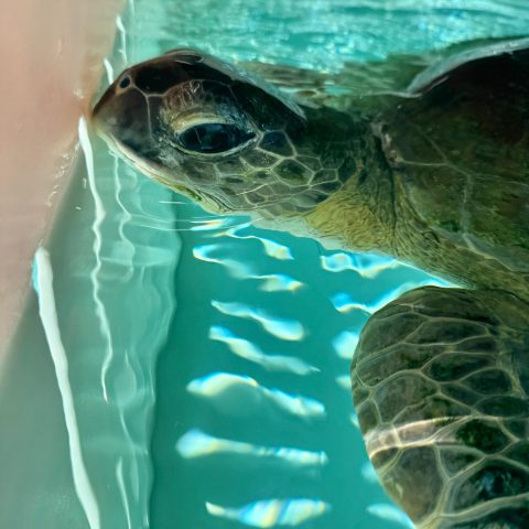 Athena is a juvenile, green sea turtle who was found out of habitat in the Steinhatchee area in Dixie county on Nov. 25th. Athena was rescued by our partners at UF Marine Animal Rescue and then transported to CMA. It is believed Athena was stranded out of habitat because of a recent king tide event. Athena has a small case of fibropapilloma tumors and is in overall good body condition.