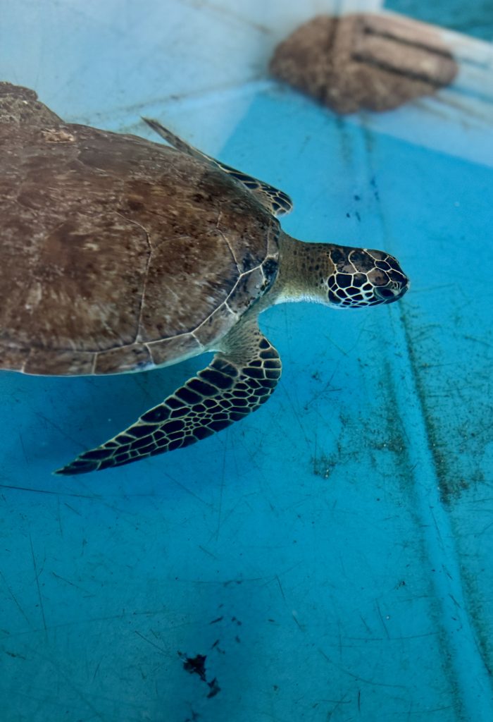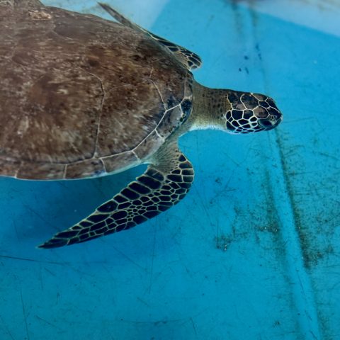 Earl Grey is a juvenile, green sea turtle that was transferred to CMA from Whitney Lab due to space limitations from a large stranding event. Earl Grey is lethargic and has a thin body condition at intake. Their initial treatment plan consists of fluid therapy.
