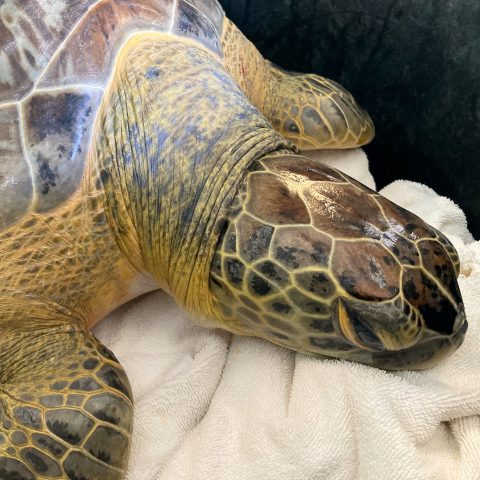 Magnolia is a large, juvenile green sea turtle who was found floating near New Port Richey in Pasco county on Nov. 12, 2025. Magnolia has healed injuries to their caudal carapace and rear flippers from a previous traumatic event. Magnolia is otherwise in a good body condition and active. We will be performing diagnostics over the next few days to help determine the cause of their buoyancy issues.