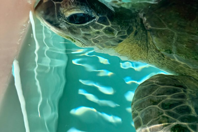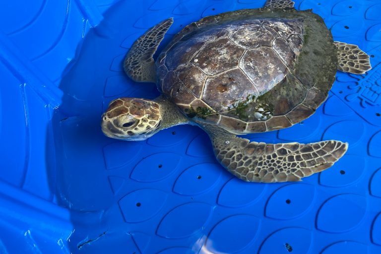 Magnolia is a large, juvenile green sea turtle who was found floating near New Port Richey in Pasco county on Nov. 12th. Magnolia has healed injuries to their caudal carapace and rear flippers from a previous traumatic event. Magnolia is otherwise in a good body condition and active. We will be performing diagnostics over the next few days to help determine the cause of their buoyancy issues.