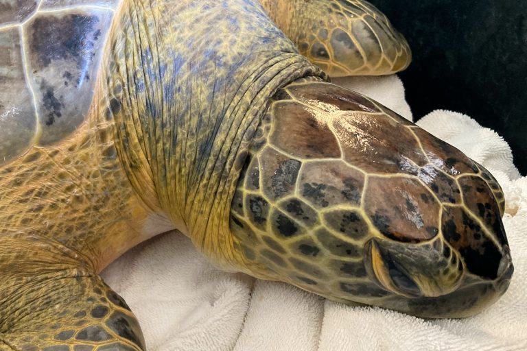 Quince is a juvenile, green sea turtle who was found washed ashore on Belleair Beach on March 11th. Quince was very lethargic and thin at intake examination with a small load of fibropapilloma tumors present.